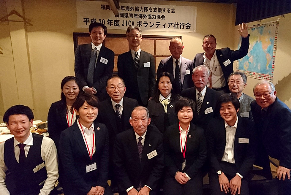 派遣前訓練(語学訓練・生活訓練等)を終え、派遣国への出発までの短い間に、派遣される隊員たちの壮行会を開催しています。派遣前の隊員たちを激励すると同時に、帰国後の隊員にも参加をしてもらい、派遣前・帰国後の双方の隊員たちの情報交換の場にもなっています。