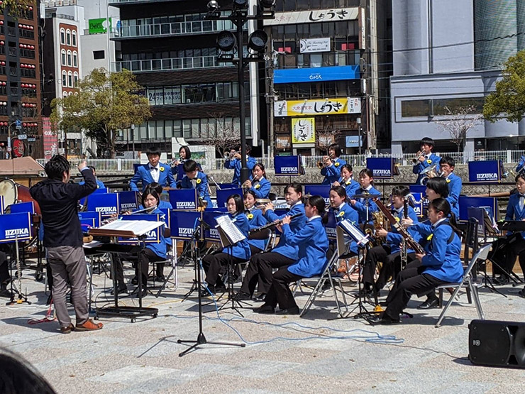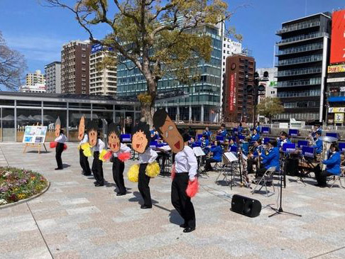 福岡市消防局音楽隊、福岡市博多小学校「金管バンド」、飯塚高等学校吹奏楽部の皆さまの思考を凝らした演奏と演出。各国の演奏とダンスに会場は各国の料理の香りと民族衣装に彩られ盛会に終える事が出来ました。